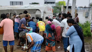 டீசல் லாரியிலிருந்து வெளியேறிய டீசலை அப்பகுதி மக்கள் கேன் கேனாக முட்டி மோதி கொண்டு பிடித்துச் சென்றதால் பரபரப்பு….