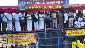 ஜல்லிக்கட்டுபோட்டியை உணவு மற்றும் உணவு வழங்கல் துறை அமைச்சர் அர.சக்கராபாணி தலைமை தாங்கி கொடியசைத்து தொடங்கி வைத்தார்.மாவட்ட ஆட்சியர் சரவணன்,கோட்டாட்சியர் திருமலை,நடிகை துஷாராவிஜயன்,ஜெயலலிதா பேரவை மாநில இணைச் செயலாளர் கண்ணன் ,திமுக தலைமை செயற்குழு உறுப்பினர் விஜயன்உட்பட பலர் கலந்து கொண்டனர்.