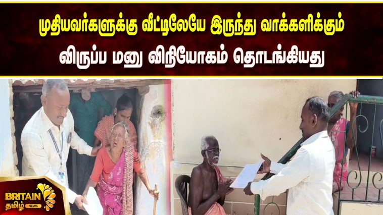 85 வயதை கடந்த முதியவர்களுக்கு வீட்டிலேயே இருந்து வாக்களிக்கும் வகையிலான விருப்ப மனு விநியோகம் தொடங்கியது. வாக்குச் சாவடி அலுவலர்கள் வீடு வீடாகச் சென்று வழங்கி வருகின்றனர்.