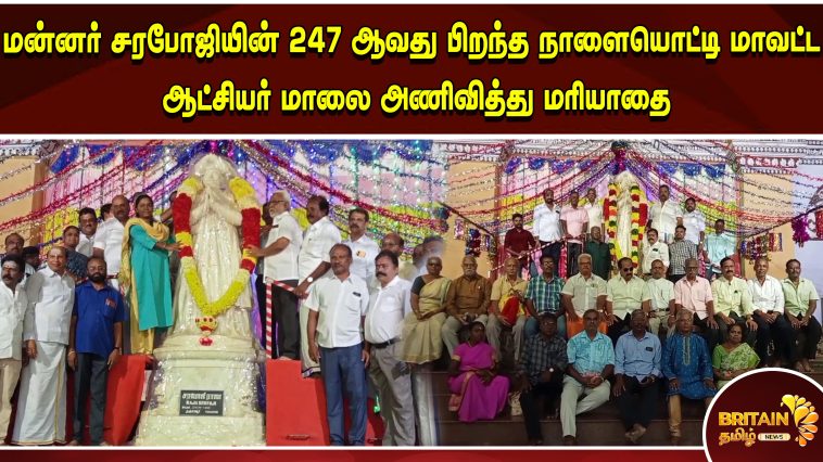 மன்னர் சரபோஜியின் 247 ஆவது பிறந்த நாளையொட்டி அவரது சிலைக்கு அரசு சார்பில் மாவட்ட ஆட்சியர் உள்ளிட்டோர் மாலை அணிவித்து மரியாதை செய்யப்பட்டது.
