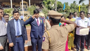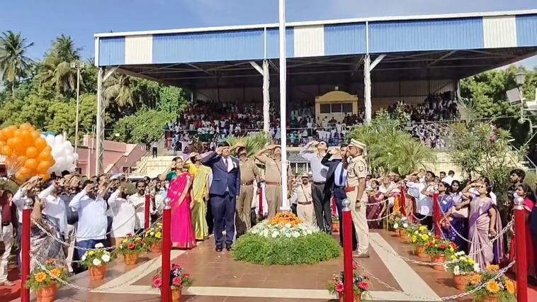 மயிலாடுதுறையில் மாவட்ட ஆட்சியர் ஸ்ரீகாந்த் தேசியக் கொடியை ஏற்றி மரியாதை