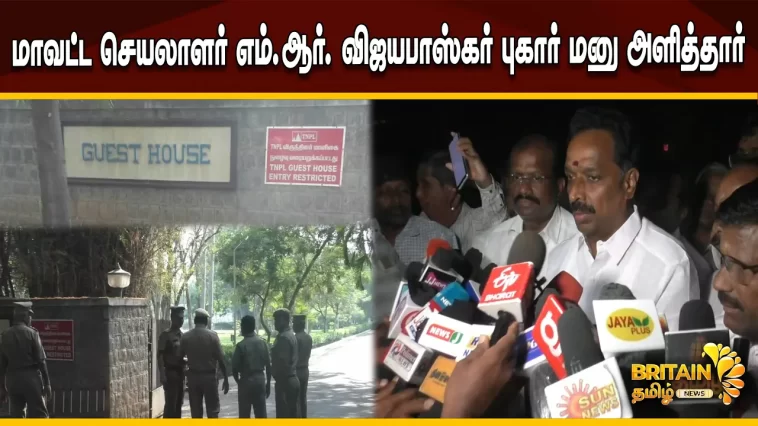மாவட்ட செயலாளர் எம்.ஆர். விஜயபாஸ்கர் புகார் மனு அளித்தார்