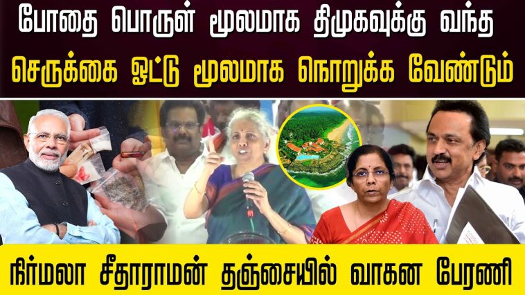 போதை பொருள் மூலமாக திமுகவுக்கு வந்த செருக்கை ஓட்டு மூலமாக நொறுக்க வேண்டும் என தஞ்சையில் பா.ஜ.க வேட்பாளரை ஆதரித்து பேசிய மத்திய அமைச்சர் நிர்மலா சீதாராமன் கேட்டு கொண்டார்.