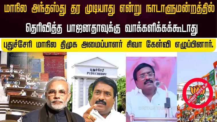 மாநில அந்தஸ்து தர முடியாது என்று நாடாளுமன்றத்தில் தெரிவித்த பாஜனதாவுக்கு வாக்களிக்கக்கூடாது. சாதாரண ரேஷன் கடையை திறக்காத, இவர்களா மாநில அந்தஸ்து பெறமுடியும் என்ற கேள்வி எழுகிறது என்று புதுச்சேரி மாநில திமுக அமைப்பாளர் சிவா கேள்வி எழுப்பினார்.