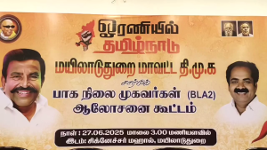 மயிலாடுதுறையில் திராவிட முன்னேற்ற கழகத்தின் தேர்தல் முகவர்கள் கூட்டம் மண்டல பெருப்பாளர் அமைச்சர் K.N. நேரு தலைமையில் நடைபெற்றது.