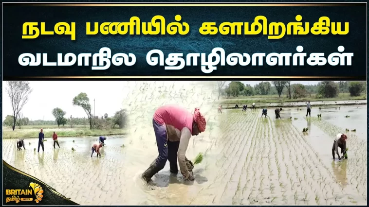 விவசாய பணிகளின் பொது நூறுநாள் வேலையை நிறுத்தி வைக்கும்படி விவசாயிகள் கோரிக்கை விடுத்து வந்தும் பயனில்லை. ஆட்கள் பற்றாக்குறையால் விவசாயிகள் அவதிப்பட்டு வந்த நிலையில் வடமாநில தொழிலாளர்களின் வருகை விவசாயிகளுக்கு உதவியாக அமைந்துள்ளது. மயிலாடுதுறை அருகே நல்லத்துக்குடி பகுதியில் வடமாநில ஆண் தொழிலாளர்கள் விவசாய வேலைகள் செய்து நாற்றுப்பறித்து அவர்களே நடவு செய்யும் பணியில் ஈடுபடத்தொடங்கியுள்ளனர். ஒப்பந்த முறையில் ஏக்கருக்கு 4500 ரூபாய் சம்பளத்தில் 12 தொழிலாளர்கள் நாற்றுபரித்து நடவு பணிகளை மேற்கொண்டு வருகின்றனர். 1 நாளைக்கு 4 ஏக்கர் வரை நடவு பணிகளை செய்து வருகின்றனர். களைப்பு தெரியாமல் இருக்க வடமாநில பாடல்களை பாடி உற்சாகத்துடனும் மிக நேர்த்தியாக திருந்திய நெல் சாகுபடி முறையில் நாற்றுபரித்து கைநடவு செய்து வருகின்றனர். குறைந்த சம்பளத்தில் வடமாநில தொழிலாளர்கள் விவசாய பணிகளில் ஈடுபடுவது தங்களுக்கு வரபிரசாதமாக உள்ளதால் விவசாயிகள் மகிழ்ச்சியடைந்துள்ளனர்.