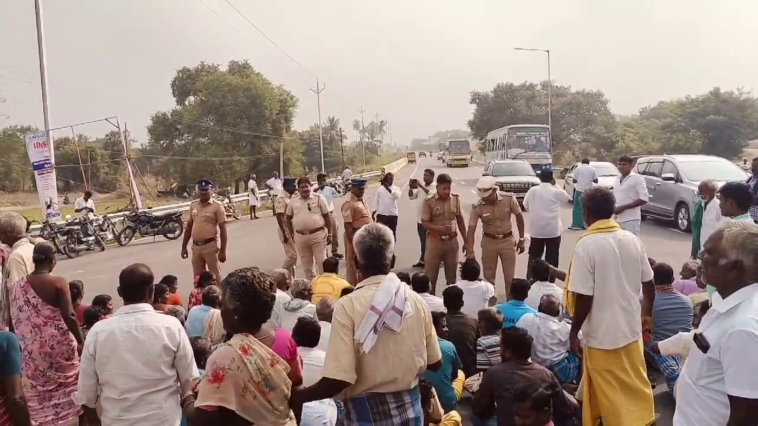 விழுப்புரம் மாவட்டம் செஞ்சி அடுத்த சத்தியமங்கலம், மற்றும் நங்கிலிகொண்டான் பகுதி மக்கள் கிருஷ்ணகிரி பாண்டிச்சேரி தேசிய நெடுஞ்சாலையில் சாலை மறியலில் ஈடுபட்டுள்ளனர்.