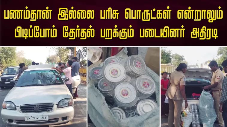 பணம்தான் இல்லை பரிசு பொருட்கள் என்றாலும் பிடிப்போம் தேர்தல் பறக்கும் படையினர் அதிரடி