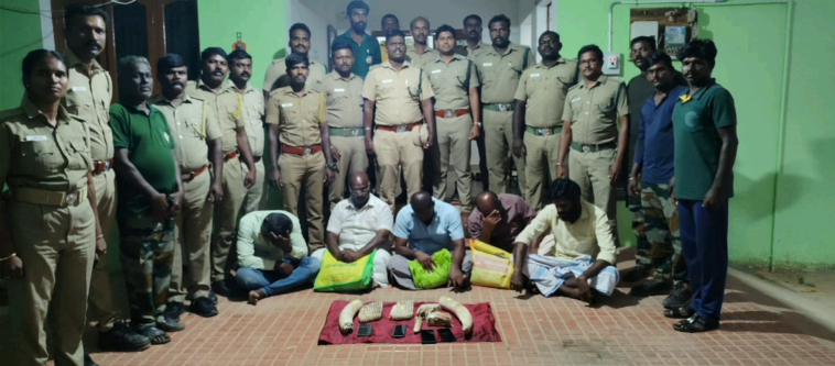 களக்காடு முண்டந்துறை புலிகள் காப்பக அதிகாரிகளுக்கு ஒரு கும்பல் யானை தந்தம் மற்றும் பற்களை பதுக்கி வைத்து விற்பனை செய்ய முயற்சி செய்வதாக ரகசிய தகவல் கிடைத்தது.