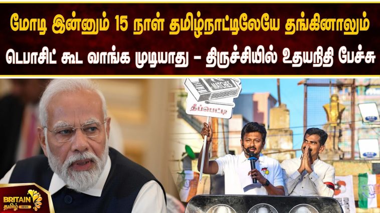 மோடி இன்னும் 15 நாள் தமிழ்நாட்டிலேயே தங்கினாலும் அவர்களால் டெபாசிட் கூட வாங்க முடியாது – திருச்சியில் உதயநிதி ஸ்டாலின் பிரச்சாரம்