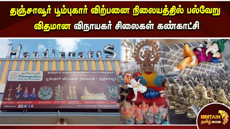 தஞ்சாவூர் பூம்புகார் விற்பனை நிலையத்தில் பல்வேறு விதமான விநாயகர் சிலைகள் கண்காட்சி‌