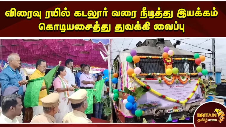 தொடர்ந்து காணொளி காட்சி மூலமாக மத்திய இணை அமைச்சர்கள் எல்.முருகன் ரயிலை துவக்கி வைத்து நிலையில் மயிலாடுதுறை ரயில்வே நிலையத்தில் நாடாளுமன்ற உறுப்பினர் ஆர்.சுதா கொடி அசைத்து கடலூருக்கு ரயில் சேவையை துவக்கி வைத்தார்.