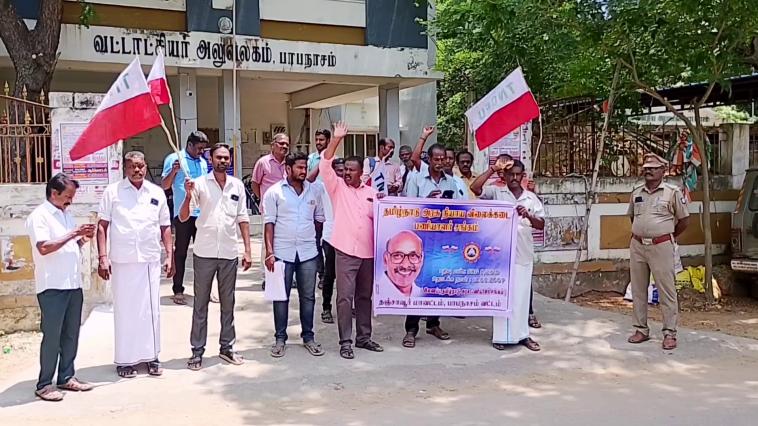 தஞ்சை மாவட்டம் பாபநாசம் வட்டாட்சியர் அலுவலகம் முன்பு தமிழ்நாடு அரசு நியாய விலை கடை பணியாளர்கள் வேலையை புறக்கணித்து கோரிக்கை ஆர்ப்பாட்டம்…..