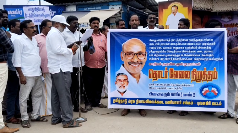 புவனகிரியில் நியாய விலை கடை பணியாளர்கள் 30 அம்ச கோரிக்கை வலியுறுத்தி ஆர்ப்பாட்டம்