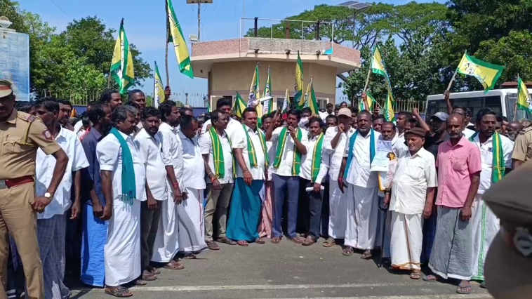 இழப்பீட்டுத் தொகை வழங்க கோரி விவசாயிகள் மற்றும் விவசாய சங்கத்தினர் முற்றுகை போராட்டம்
