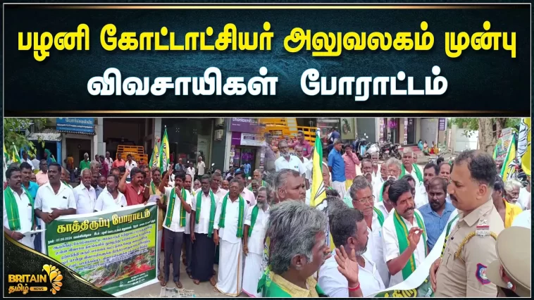 பழனி அருகே விவசாய நிலத்தில் நுழையும் காட்டுயானைகளை வெளியேற்ற கோரி விவசாயிகள் போராட்டத்தில் ஈடுபட்டனர்.