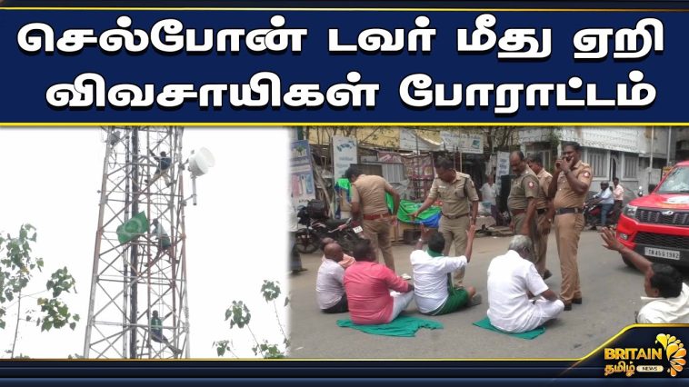 செல்போன் டவர் மீது ஏறி விவசாயிகள் போராட்டம்