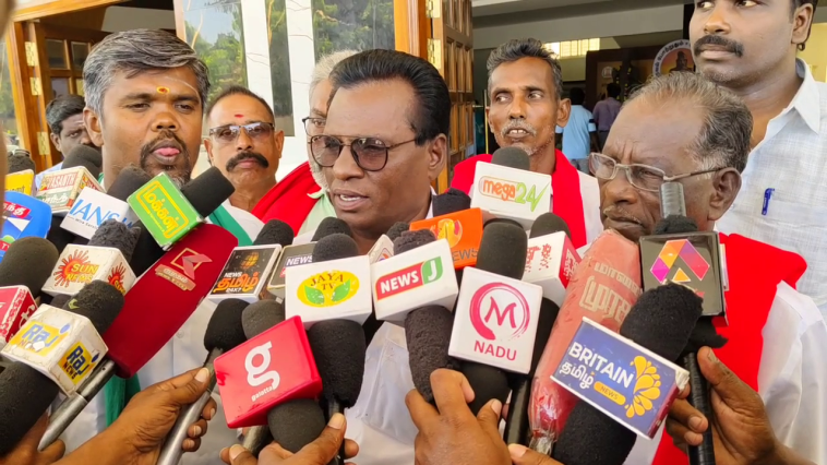 கடந்த ஆண்டு பருவம் தவறி பெய்த மழையால் பாதிக்கப்பட்ட பயிர்களுக்கு அறிவித்த நிவாரணத்தை இதுவரை வழங்காத தமிழக அரசை கண்டித்து விவசாயிகள் குறைதீர்க்கும் கூட்டத்தில், மாவட்ட ஆட்சியர் எதிரே தரையில் அமர்ந்து விவசாயிகள் தர்ணா போராட்டத்தில் ஈடுபட்டதால் பரபரப்பு