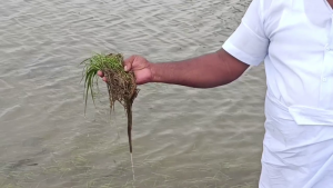 வாய்க்கால்கள் முழுவதும் புதர்மண்டி கிடப்பதால் தண்ணீர் வடியவில்லை என விவசாயிகள் வேதனை தெரிவிக்கின்றனர் இன்னும் மூன்று நாட்களுக்கு மேல் தண்ணீர் தேங்கி இருந்தால் நாற்றுகள் முற்றிலும் அழுகி மறு விவசாயம் செய்யக்கூடிய சூழலுக்கு விவசாயிகள் தள்ளப்படுவார்கள்.