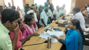குத்தாலம் பகுதியில் குளங்களில் காவிரி நீர் இதுவரை வந்து சேரவில்லை மாவட்ட ஆட்சியரிடம் இன்று நேரில் மனு அளித்த விவசாயிகள்.