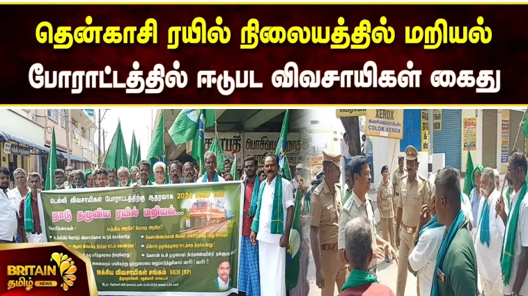 தென்காசி ரயில் நிலையத்தில் மறியலில் ஈடுபட முயன்ற விவசாயிகள் காவல் துறையினர் கைது செய்தனர்