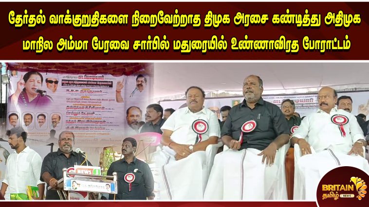 தேர்தல் வாக்குறுதிகளை நிறைவேற்றாத திமுக அரசை கண்டித்து அதிமுக மாநில அம்மா பேரவை சார்பில் மதுரையில் உண்ணாவிரத போராட்டம்