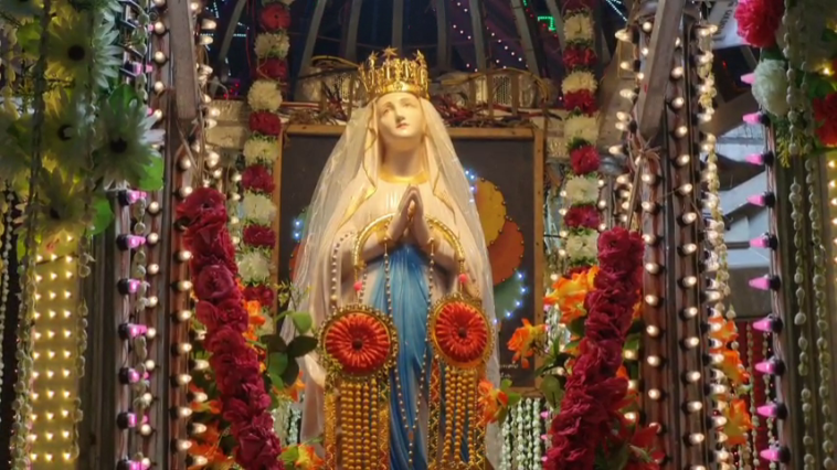 அப்போது அங்கு கூடி இருந்த ஏராளமான பக்தர்கள் மரியே வாழ்க என பக்தி கோஷமிட்டு மாதாவை வழிபட்டனர்.