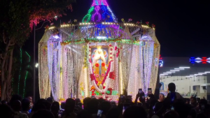 மல்லிகை பூ மற்றும் மின்விளக்கால் அலங்கரிக்கப்பட்ட இந்த தேரில் மாதா சொரூபம் வைக்கப்பட்டு சிவகங்கை மறைமாவட்ட ஆயர் லூர்து ஆனந்தம் புனிதம் செய்து தேரினை தொடங்கி வைத்தார்.