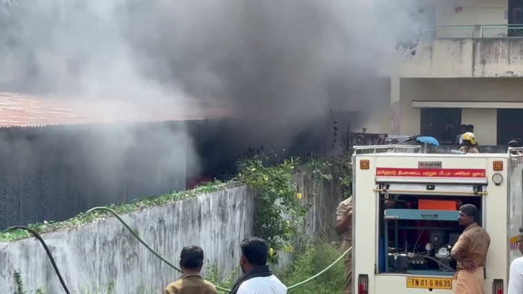 இதில், அகல் விளக்கு தயார் செய்ய பயன்படுத்தப்படும் இயந்திரங்கள், ஆயில் உள்ளிட்ட 10 லட்சம் மதிப்பில் ஆன பொருட்கள் தீயில் எரிந்து சாம்பலானது.