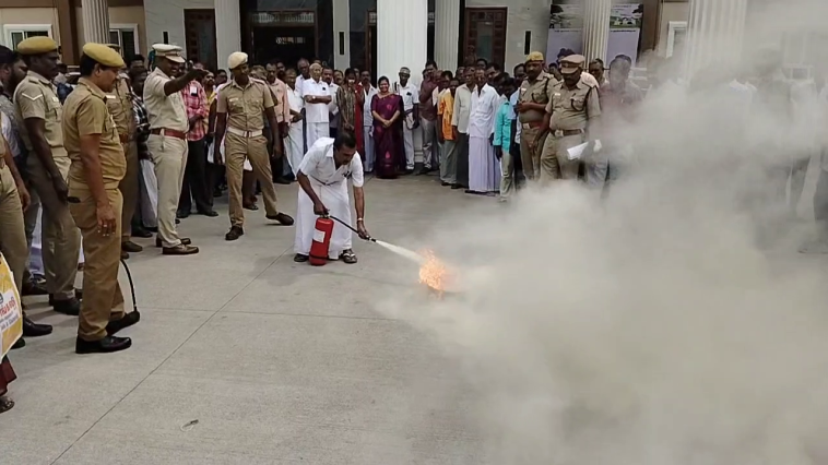 மாவட்ட ஆட்சியர் மகாபாரதி தலைமையில் நடைபெற்ற கூட்டத்தில் மாவட்ட வருவாய் அலுவலர் உமா மகேஸ்வரி மற்றும் தீயணைப்பு துறை அதிகாரிகள் பங்கேற்று பயிற்சி அளித்தனர் தொடர்ந்து தீ விபத்து ஏற்பட்டால் மேற்கொள்ளக்கூடிய முன்னெச்சரிக்கை நடவடிக்கைகள் குறித்து நேரடியாக செயல்முறை விளக்கம் அளிக்கப்பட்டது.