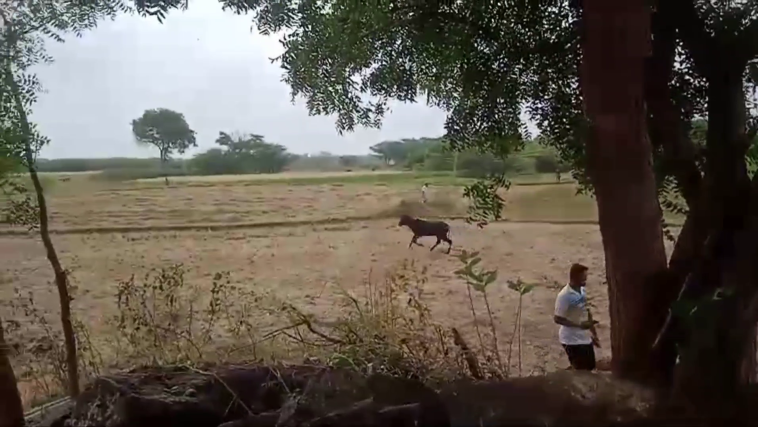 காரியாபட்டி அருகே குரண்டி கிராமத்தில் கிணற்றில் தவறி விழுந்த பசு மாட்டை உயிருடன் மாட்டை தீயணைப்புத் துறையினர்; கயிறு அவிழ்த்தவுடன் துள்ளி குதித்து ஓடிய பசுமாடு