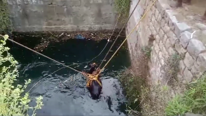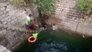 கிணற்றில் இருந்து வெளியே வந்த மாடு கயிறை அவிழ்த்தவுடன் துள்ளி குதித்து அங்கிருந்து ஓடியது. கிணற்றில் விழுந்த பசு மாட்டை உயிருடன் மீட்டது அப்பகுதி மக்களிடையே மகிழ்ச்சி ஏற்படுத்தியது.