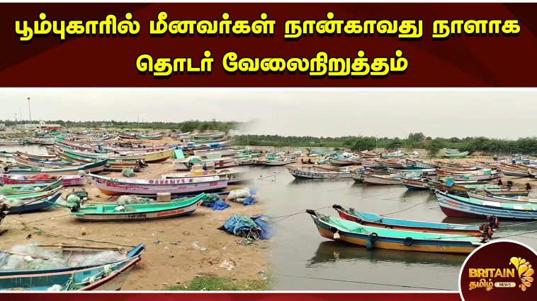 பூம்புகாரில் மீனவர்கள் நான்காவது நாளாக தொடர் வேலைநிறுத்தம், கைது செய்யப்பட்ட மீனவர்கள் படகுடன் விடுவிக்கப்படும் வரை வேலை நிறுத்தம் தொடரும் என்று அறிவிப்பு.