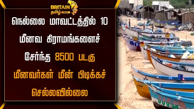 நெல்லை மாவட்டத்தில் கனமழை எச்சரிக்கை காரணமாக 10 மீனவ கிராமங்களைச் சேர்ந்த 8500 நாட்டுப் படகு மீனவர்கள் கடலுக்கு மீன் பிடிக்கச் செல்லவில்லை.