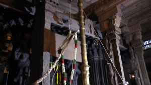 தொடா்ந்து கொடிமரத்திற்கு மஞ்சள் பால் தயிர் பஞ்சாமிர்தம் இளநீர் சந்தனம் உள்ளிட்ட அபிஷேகத்திரவியம் கொண்டு திருமஞ்சனம் நடைபெற்றது. அலங்காரம்செய்யப்பட்ட கொடி மரத்திற்கு சோடஷ தீபாரதனைகள் நடைபெற்றது. ஏரானமான பக்தா்கள் சுவாமி தாிசனம் செய்தனா்.
