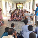 புதுச்சேரி முருங்கப்பாக்கம் கைவினை கிராமத்தில் பத்மஸ்ரீ விருது பெற்ற முனுசாமி கல்லூரி மாணவர்களுக்கு களிமண்ணால் பொம்மைகள் செய்வது குறித்து பயிற்சி அளித்தார்.
