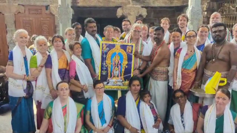 பழனி முருகன் கோயிலில் வேட்டி , சேலை அணிந்து வந்த வெளிநாட்டினர்