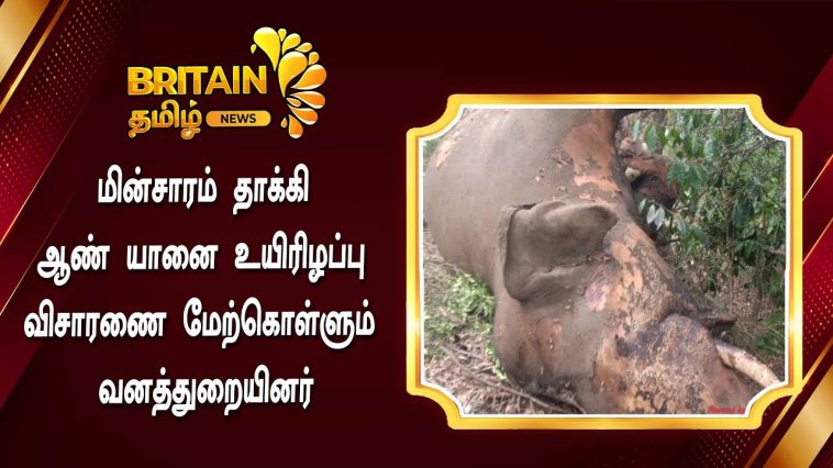 மின்சாரம் தாக்கி ஆண் யானை உயிரிழப்பு விசாரணை மேற்கொள்ளும் வனத்துறையினர்