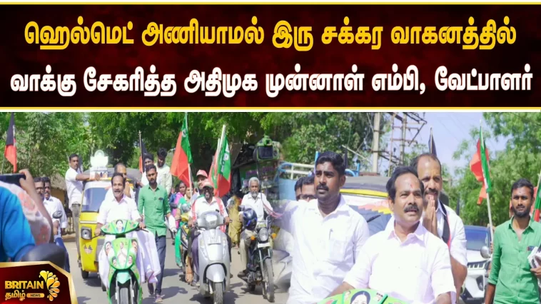 ஹெல்மெட் அணியாமல் இரு சக்கர வாகனத்தில் வாக்கு அதிமுக முன்னாள் எம்பி அதிமுக வேட்பாளர் கருப்பையா