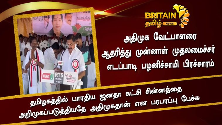 சிதம்பரத்தில் அதிமுக வேட்பாளரை ஆதரித்து முன்னாள் முதலமைச்சர் எடப்பாடி பழனிச்சாமி பிரச்சாரம். தமிழகத்தில் பாரதிய ஜனதா கட்சி சின்னத்தை அறிமுகப்படுத்தியதே அதிமுகதான் என பரபரப்பு பேச்சு.