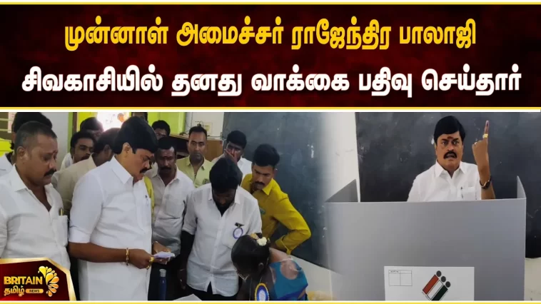 விருதுநகர் நாடாளுமன்றத் தொகுதிக்கு உட்பட்ட பகுதியில் உள்ள சிவகாசியில் முன்னாள் அமைச்சர் ராஜேந்திர பாலாஜி தனது வாக்கை பதிவு செய்தார்….