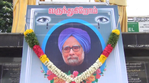 இந்த நிலையில் முன்னாள் பிரதமர் மன்மோகன் சிங் மறைவுக்கு அஞ்சலி செலுத்தும் வகையில் நெல்லை மாநகர் மாவட்ட காங்கிரஸ் கமிட்டி அலுவலகம் முன்பு அவரது உருவப்படம் அலங்கரித்து வைக்கப்பட்டுள்ளது.