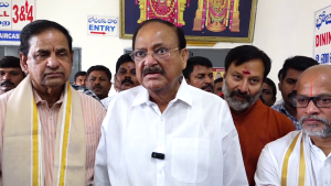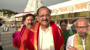 முதல் நாள் திருமலையில் அன்னதான சாப்பாடு. இரண்டாவது நாளான இன்று ஏழுமலையான் வழிபாடு. முன்னாள் துணை ஜனாதிபதி வெங்கையா நாயுடு.