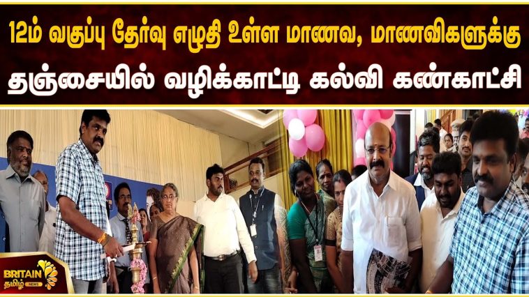 12ம் வகுப்பு தேர்வு எழுதி உள்ள மாணவ, மாணவிகளுக்கு வழிக்காட்டி கல்வி கண்காட்சி தஞ்சையில் நடைப்பெற்று; 12 ஆயிரத்துக்கும் மேற்பட்ட மாணவ மாணவிகள் பங்கேற்பு