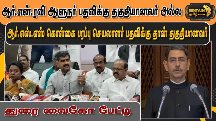 ஆர்.என்.ரவி ஆளுநர் பதவிக்கு தகுதியானவர் அல்ல அவர் ஆர்.எஸ்.எஸ் கொள்கை பரப்பு செயலாளர் பதவிக்கு தான் தகுதியானவர் – துரை வைகோ பேட்டி