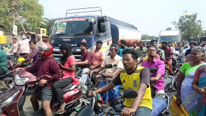இந்த நிலையில் ரயில்வே பாதை மற்றும் போக்குவரத்து பாதையை கடந்து சென்று வருகின்றனர் இதனால் ரயில்வே நிர்வாகத்தினர் இடம் ஒப்புதல் வாங்கி மின் ஒயர்களை கழட்டி விட்டு சென்று .சாலையின் குறுக்கே திடீரென சென்றதால் கடுமையான போக்குவரத்து பாதிப்பு ஏற்பட்டது.