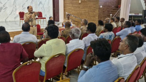 இதில் எஸ் எஸ் பி தலைமை நடைபெற்ற கூட்டத்தில் ஊர்வலம் குறித்து பல்வேறு ஆலோசனைகள் வழங்கப்பட்டது அப்போது பேசிய எஸ் பி சுப்பிரமணியன் உற்சாகத்துடன் பங்கேற்கும் இளைஞர்கள் பொதுமக்களுக்கு மற்றும் வாகன ஓட்டிகளுக்கு இடையூறாக இருக்கக் கூடாது என்றும் போலீசார் அனுப்பி வைக்கும் பாதைகளில் பின்பற்ற வேண்டும் என்றும் இளைஞர்கள் உற்சாகம் பண்ணுவது முறைதான் அதன் ஒரு அளவிற்கு மட்டும் இருக்க வேண்டும்.