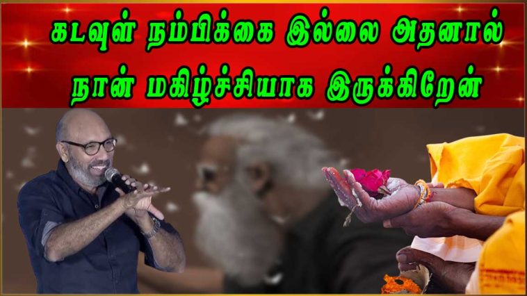 இங்கு நிறைய பேருக்கு கடவுள் நம்பிக்கை இல்லை அதைக் கேட்கும் பொழுது மகிழ்ச்சியாக இருக்கிறது, நீங்கள் மகிழ்ச்சியாக இருக்க வேண்டும் என்றால், கடவுள் என்ற கற்பனை உட்பட சாஸ்திரம், சம்பிரதாயம், என்ற எந்தவிதமான மூடநம்பிக்கை யும் இல்லாமல் இருத்தால் மகிழ்ச்சியாக இருபீர்கள்.