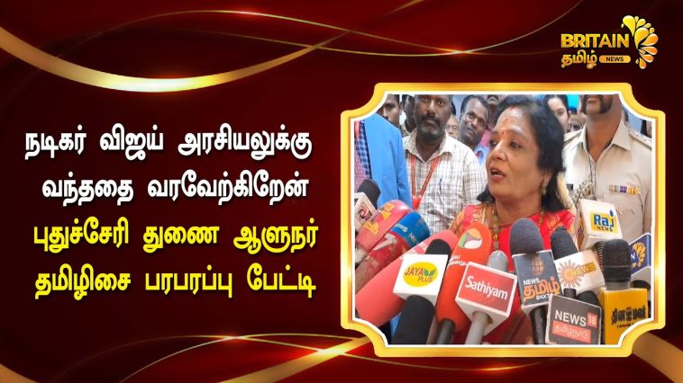 நடிகர் விஜய் அரசியலுக்கு வந்ததை வரவேற்கிறேன் புதுச்சேரி துணை ஆளுநர் தமிழிசை பரபரப்பு பேட்டி
