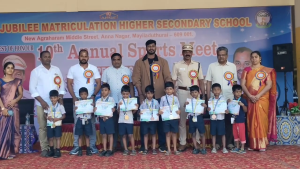 மயிலாடுதுறை மாவட்டம்,அண்ணா நகரில்,உள்ள தனியார் மெட்ரிக்குலேசன் பள்ளியில் 10-ம் ஆண்டு விளையாட்டு விழா நடைபெற்றது.விழாவுக்கு மாவட்ட அடிசனல் காவல் கண்காணிப்பாளர் ஜெயக்குமார் தலைமை தாங்கினார்.